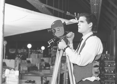 Joe checks out the camera angle before shooting one of the final shots with Crazy Granny at the counter. |