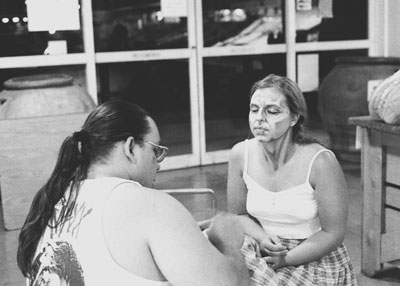 Odin Abbott applying make-up to the young Jessica Scott, transforming her into the old lady - Crazy Granny. |