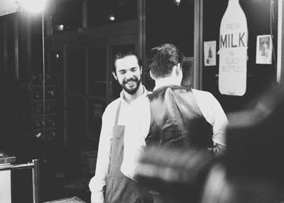 Bill Voorhees (Lighting, Background Player and all around go-to guy) pals around with Joe before the big cash register scene. |